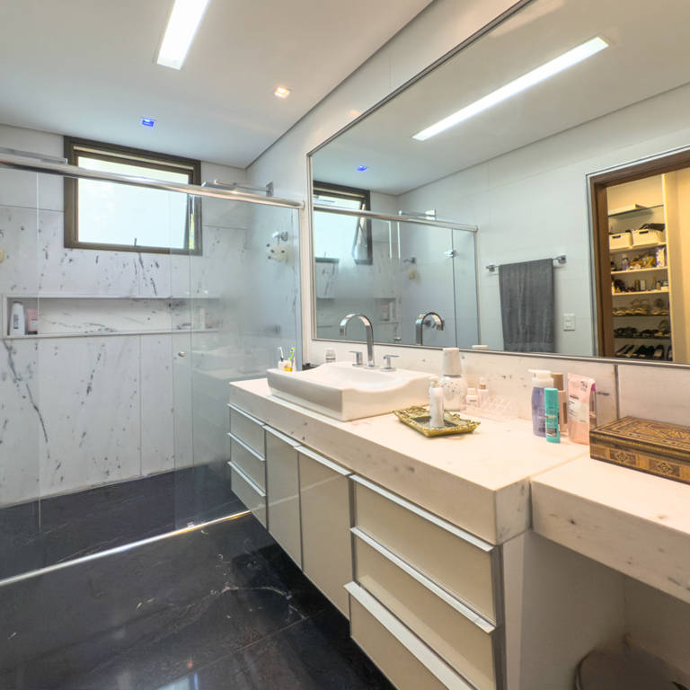 5 quartos (3 suítes) e 2 semi-suítes e escritório. Sala 3 ambientes com pé direito duplo